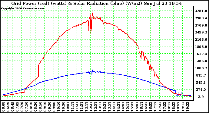 20060723 Grid Power (watts) & Solar Radiation (W/m2)