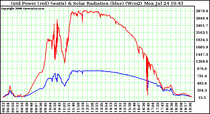 20060724 Grid Power (watts) & Solar Radiation (W/m2)