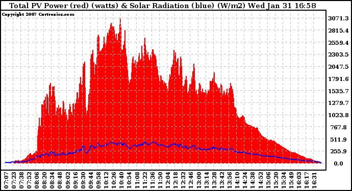 20070131 Total PV Panel Power Output & Solar Radiation