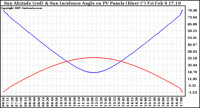 20070209 Sun Altitude Angle & Sun Incidence Angle on PV Panels