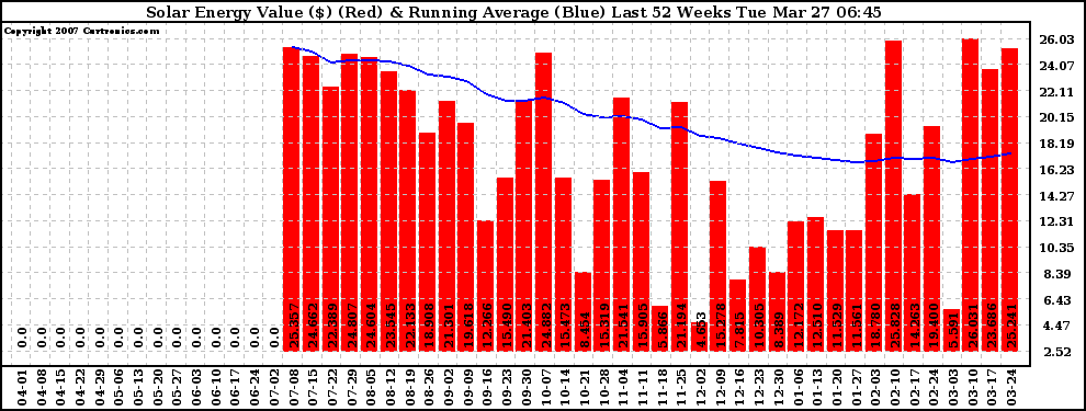 20070327 Weekly Solar Energy Production Value Running Average Last 52 Weeks
