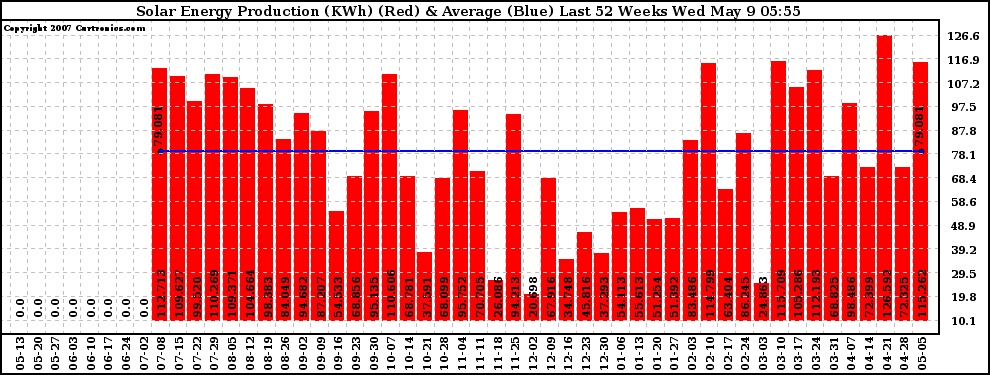 20070509 Weekly Solar Energy Production Last 52 Weeks