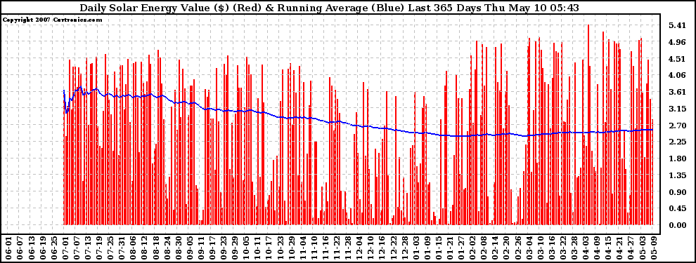 20070510 Daily Solar Energy Production Value Running Average Last 365 Days