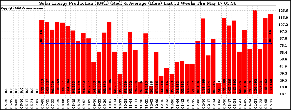 20070517 Weekly Solar Energy Production Last 52 Weeks