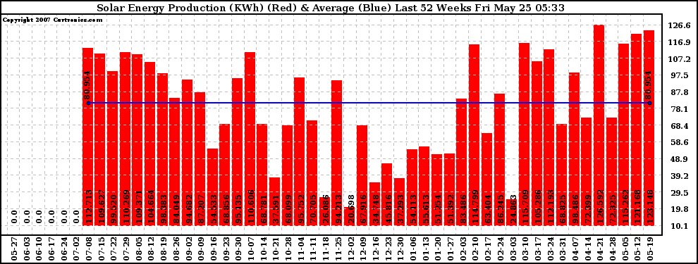20070525 Weekly Solar Energy Production Last 52 Weeks