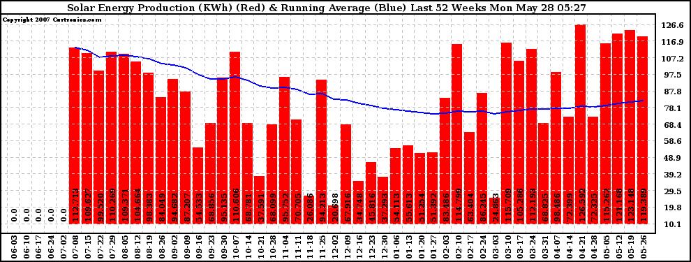 20070528 Weekly Solar Energy Production Running Average Last 52 Weeks