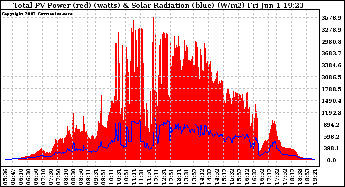 20070601 Total PV Panel Power Output & Solar Radiation