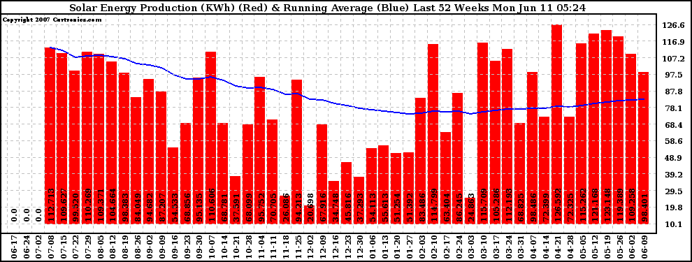 20070611 Weekly Solar Energy Production Running Average Last 52 Weeks