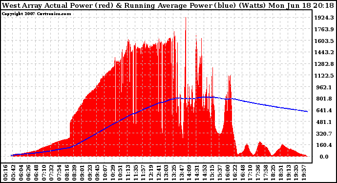 20070618 West Array Actual & Running Average Power Output