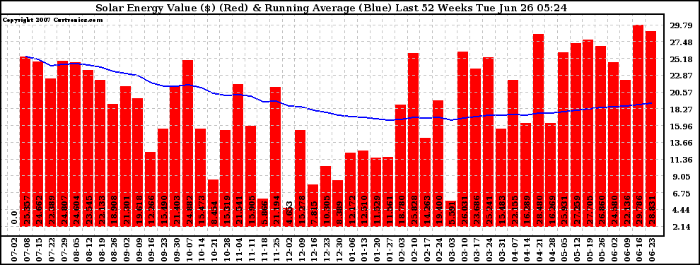 20070626 Weekly Solar Energy Production Value Running Average Last 52 Weeks
