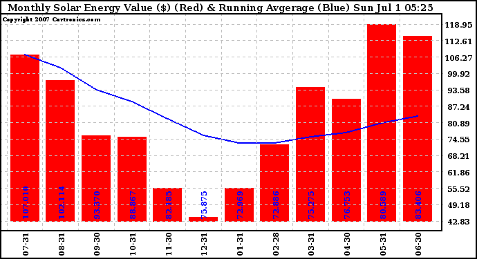 20070701 Monthly Solar Energy Production Value Running Average