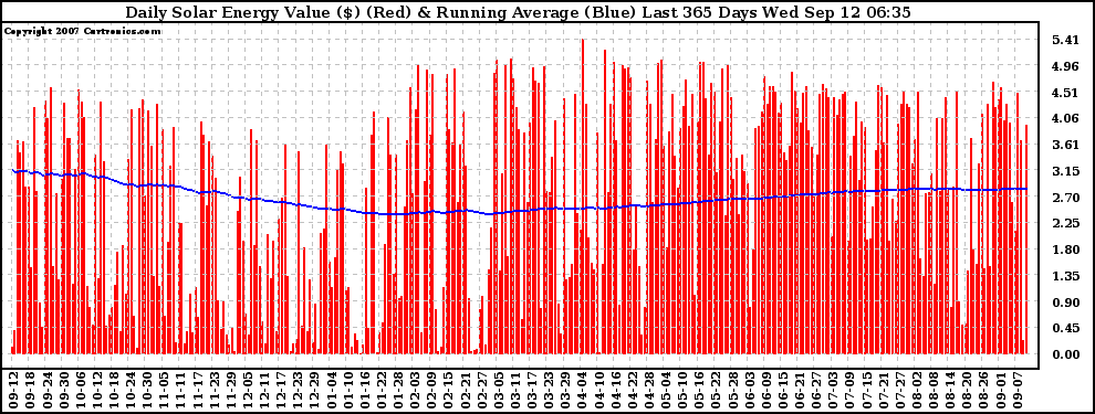 20070912 Daily Solar Energy Production Value Running Average Last 365 Days