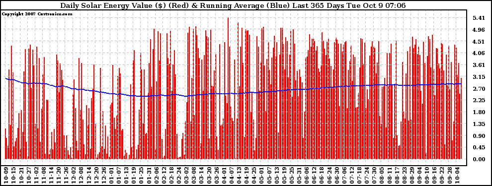 20071009 Daily Solar Energy Production Value Running Average Last 365 Days