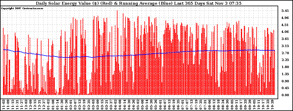 20071103 Daily Solar Energy Production Value Running Average Last 365 Days