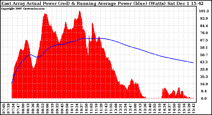 20071201 East Array Actual & Running Average Power Output