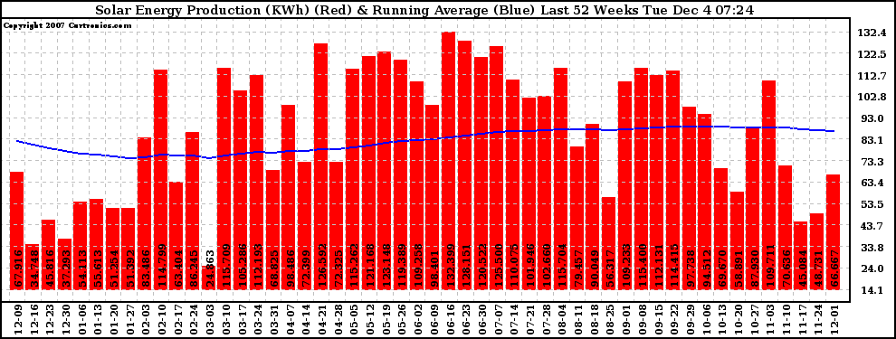 20071204 Weekly Solar Energy Production Running Average Last 52 Weeks