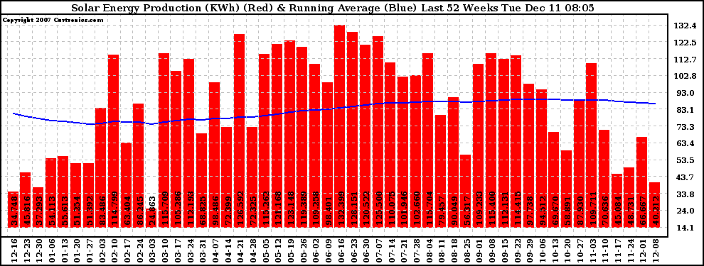 20071211 Weekly Solar Energy Production Running Average Last 52 Weeks