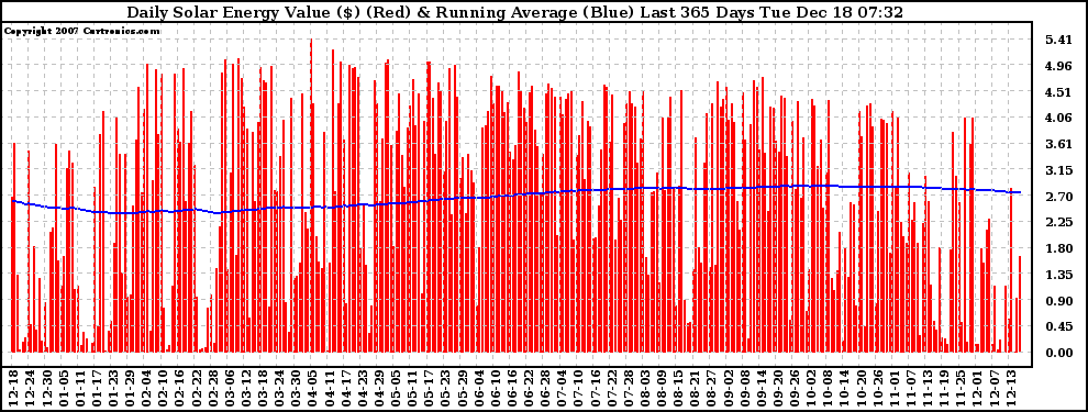20071218 Daily Solar Energy Production Value Running Average Last 365 Days