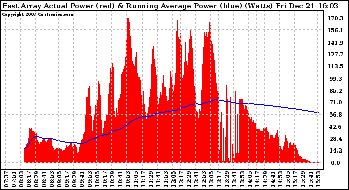 20071221 East Array Actual & Running Average Power Output