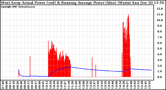 20071230 West Array Actual & Running Average Power Output