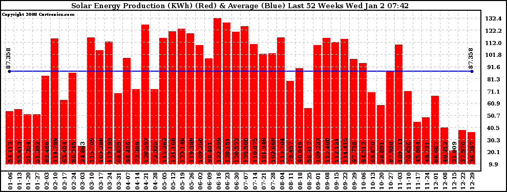 20080102 Weekly Solar Energy Production Last 52 Weeks