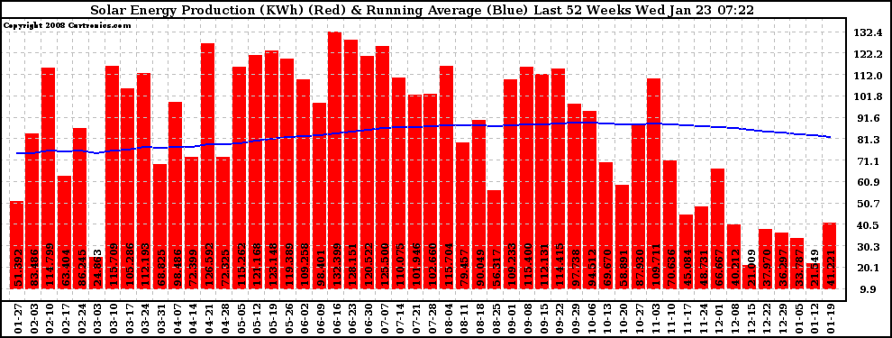 20080123 Weekly Solar Energy Production Running Average Last 52 Weeks