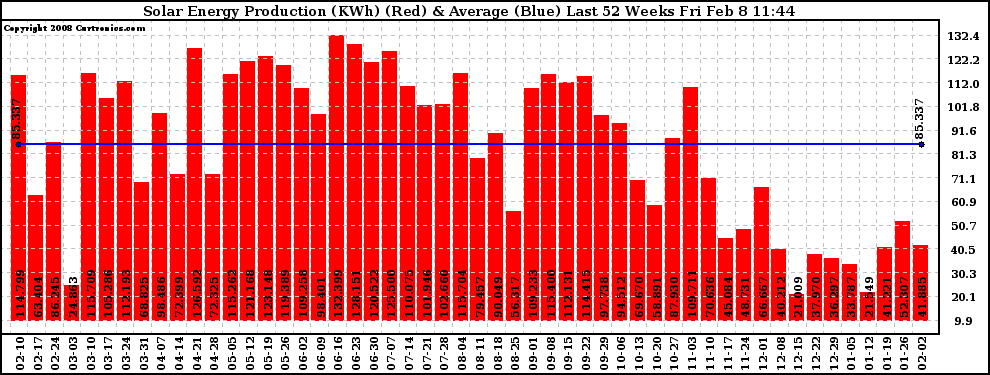 20080208 Weekly Solar Energy Production Last 52 Weeks