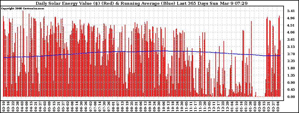 20080309 Daily Solar Energy Production Value Running Average Last 365 Days