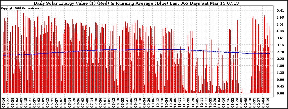 20080315 Daily Solar Energy Production Value Running Average Last 365 Days