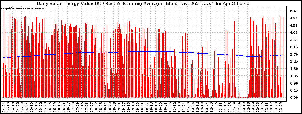 20080403 Daily Solar Energy Production Value Running Average Last 365 Days