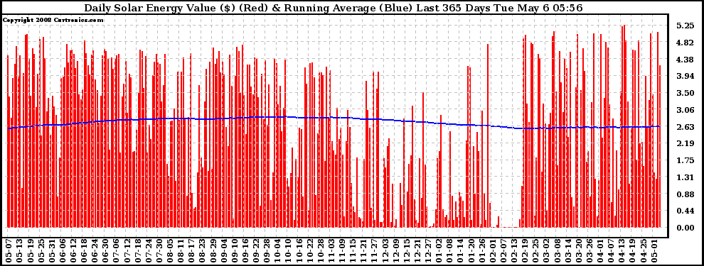 20080506 Daily Solar Energy Production Value Running Average Last 365 Days