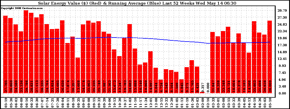 20080514 Weekly Solar Energy Production Value Running Average Last 52 Weeks