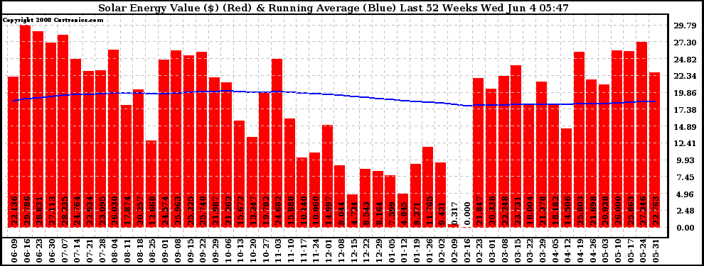 20080604 Weekly Solar Energy Production Value Running Average Last 52 Weeks