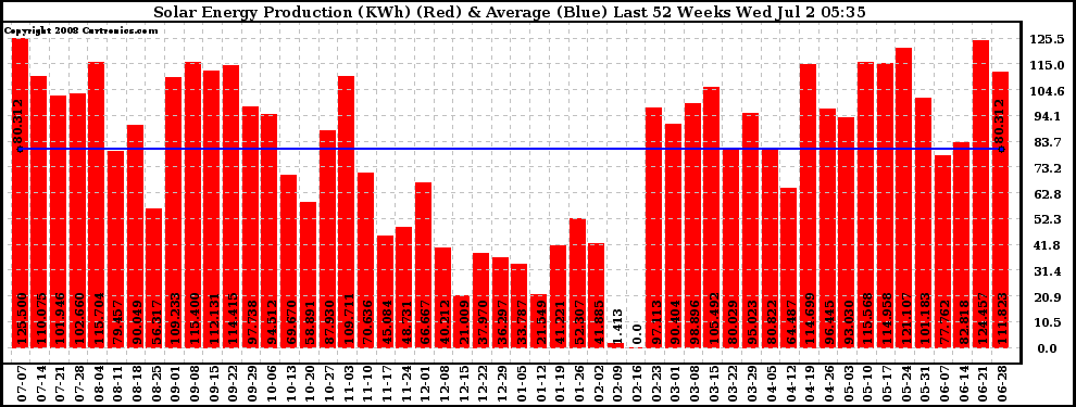 20080702 Weekly Solar Energy Production Last 52 Weeks