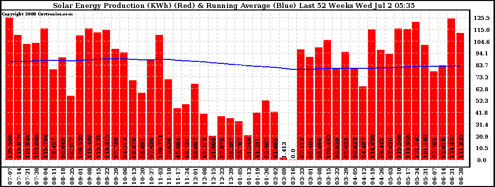 20080702 Weekly Solar Energy Production Running Average Last 52 Weeks