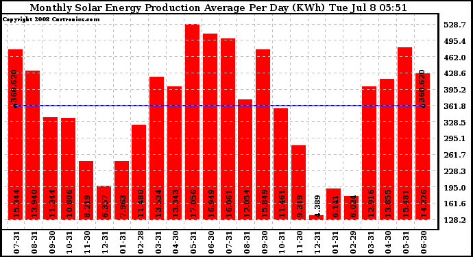 20080708 Monthly Solar Energy Production Average Per Day (KWh)