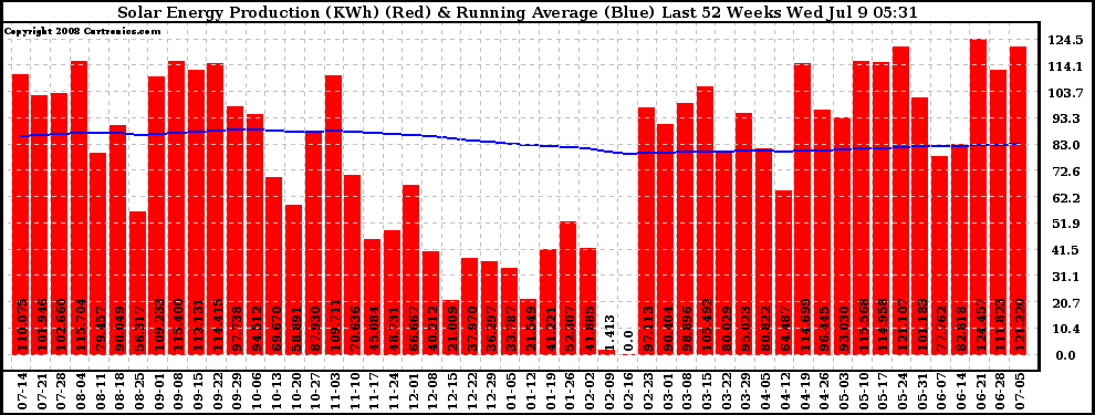 20080709 Weekly Solar Energy Production Running Average Last 52 Weeks