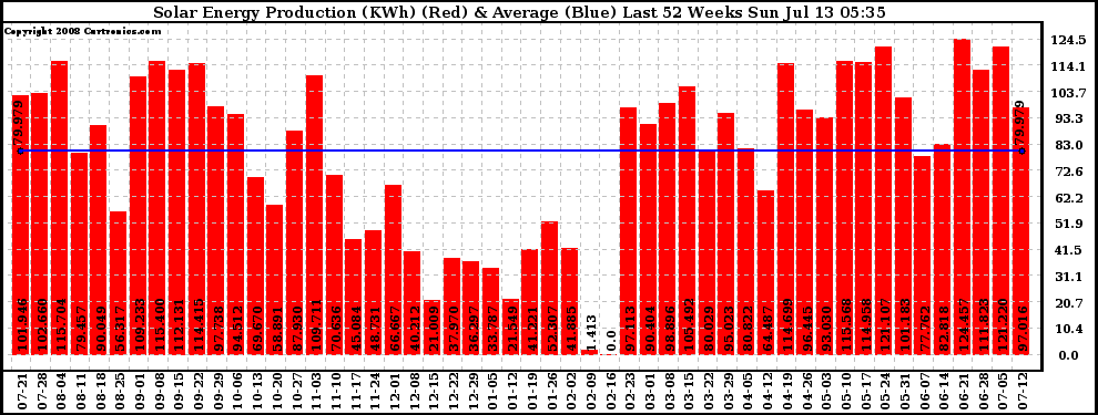 20080713 Weekly Solar Energy Production Last 52 Weeks
