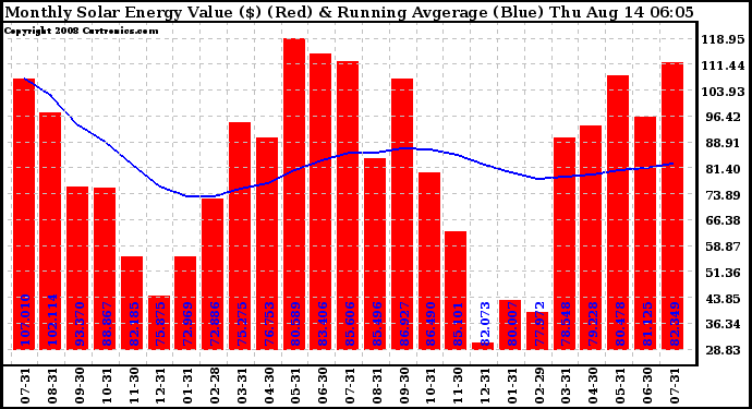 20080814 Monthly Solar Energy Production Value Running Average