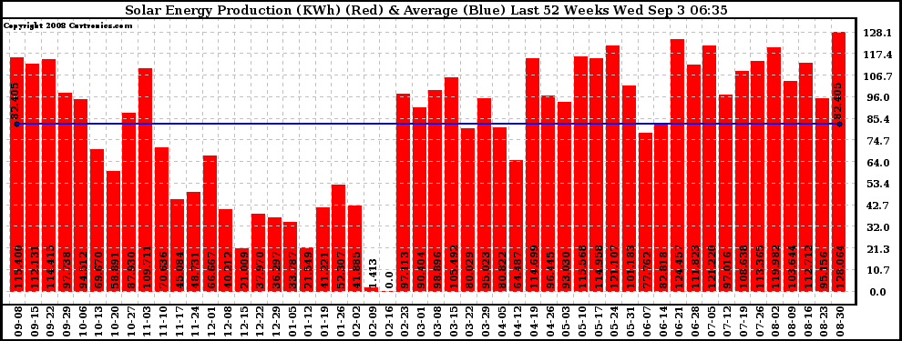 20080903 Weekly Solar Energy Production Last 52 Weeks