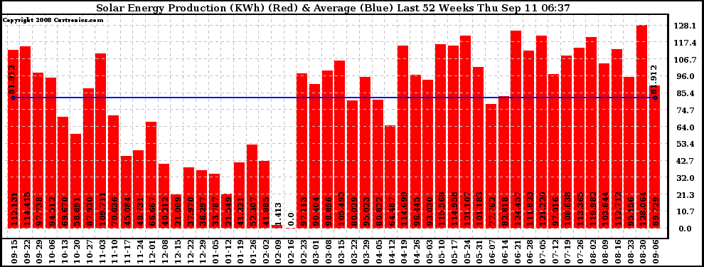 20080911 Weekly Solar Energy Production Last 52 Weeks