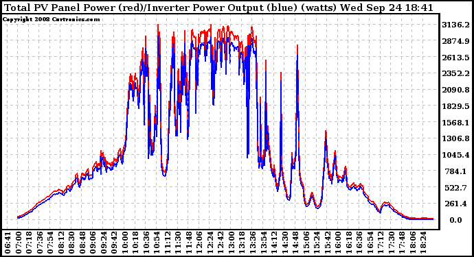 20080924 PV Panel Power Output & Inverter Power Output