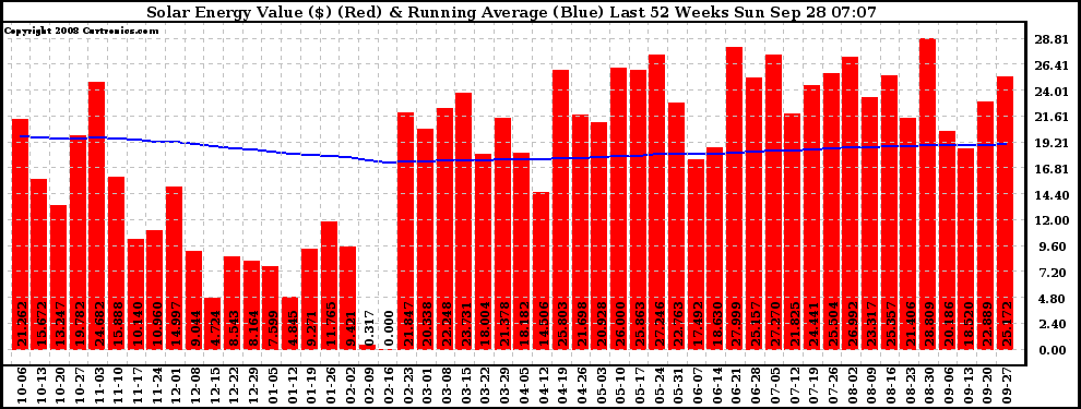 20080928 Weekly Solar Energy Production Value Running Average Last 52 Weeks