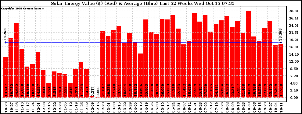 20081015 Weekly Solar Energy Production Value Last 52 Weeks