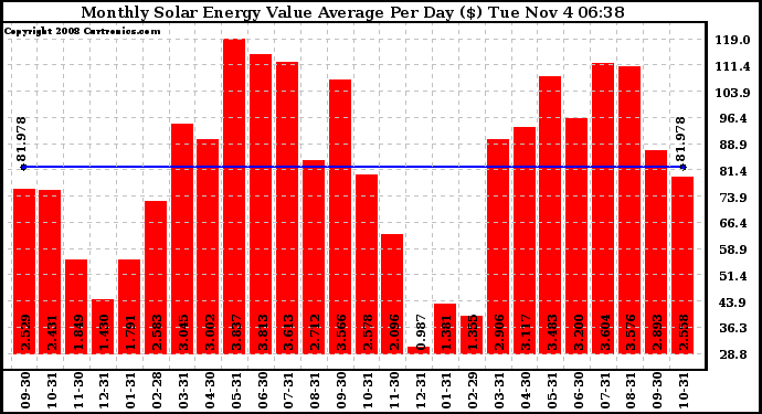 20081104 Monthly Solar Energy Value Average Per Day ($)