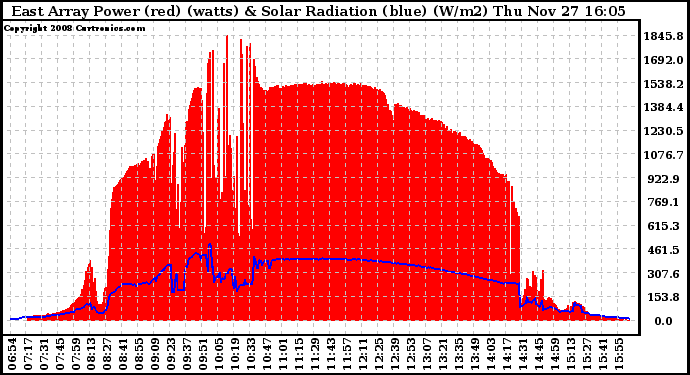 20081127 East Array Power Output & Solar Radiation