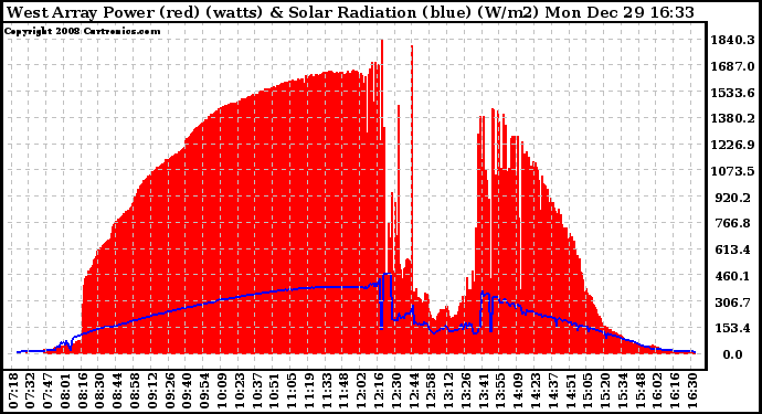 20081229 West Array Power Output & Solar Radiation