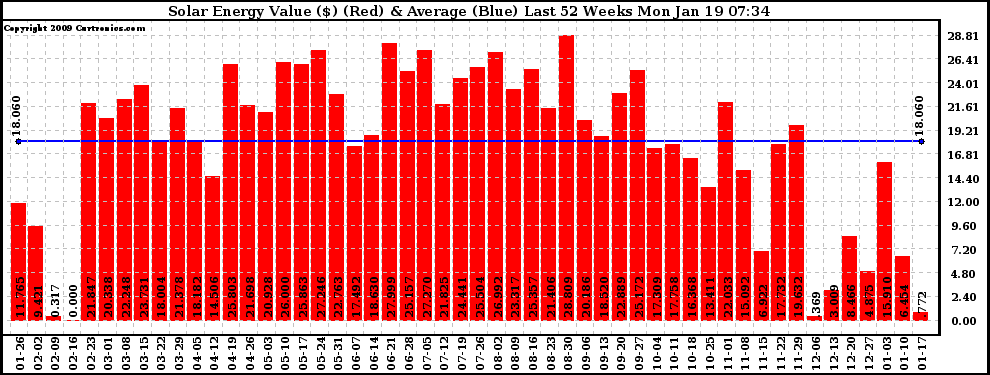 20090119 Weekly Solar Energy Production Value Last 52 Weeks