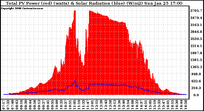 20090125 Total PV Panel Power Output & Solar Radiation