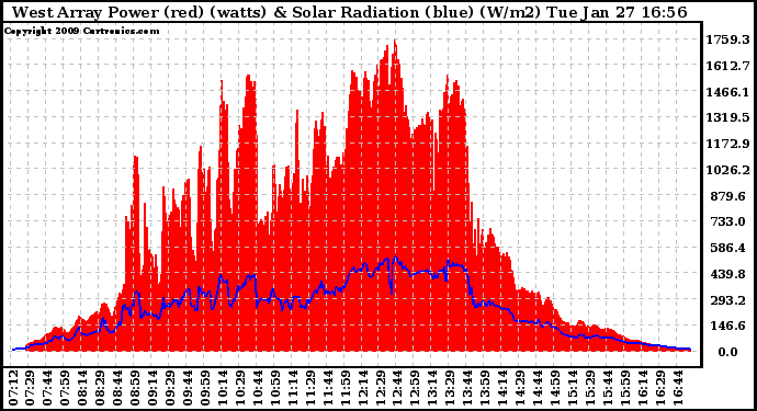 20090127 West Array Power Output & Solar Radiation